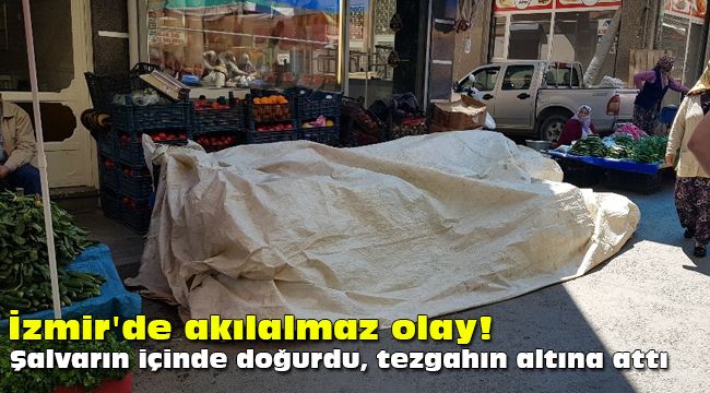 İzmir'in Tire ilçesinde pazarcı kadın, şalvarın içinde doğurduğu bebeğini şalvarıyla beraber tezgahın altına bıraktı. Bebek hayatını kaybetti.