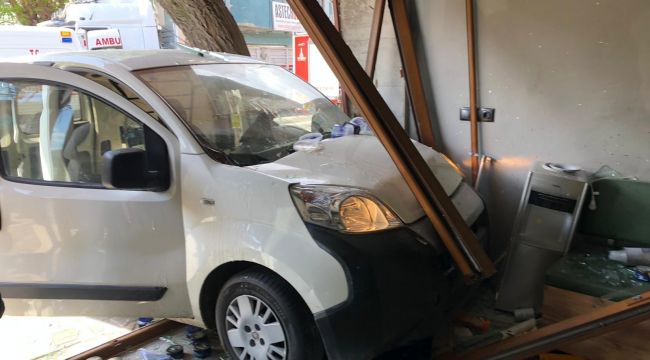 Edinilen bilgiye göre kaza, Bornova ilçesi Kamil Tunca Caddesi üzerinde meydana geldi. Yol üzerinde hızla gittiği iddia edilen 35 HA 1323 plakalı hafif ticari aracın sürücüsü, aynı istikamette seyreden bir tıra çarptı. Yön değiştiren araç, yol üzerinde bulunan bir berber dükkanına daldı. Kazanın ardından iş yeri adeta savaş alanına dönerken, içeride bulunanlar neye uğradığını şaşırdı. Kırılan camlar sebebiyle içeride bulunan müşteri başından hafif şekilde yaralanırken, araç sürücüsü de hastaneye kaldırıldı. Kaza esnasında dükkanın önünden geçen bir kadın ise yol kenarında bulunan ağaç sayesinde ölümden kıl payı kurtuldu. Öte yandan dehşet anları saniye saniye güvenlik kameralarınca kaydedildi.