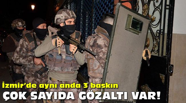 İzmir Emniyet Müdürlüğü'ne bağlı ekipler sabah saatlerinde üç ayrı operasyona imza attı.İzmir Cumhuriyet Başsavcılığınca, yürütülen soruşturma kapsamında uyuşturucu ticareti yapmak suçuna istinaden 17 yakalama kararına istinaden 19 şüpheli hakkında yakalama kararı verildi.İl Emniyet Müdürlüğü Narkotik Suçlarla Mücadele Şubesi ekiplerince, eş zamanlı operasyon başlatıldı.PKK'YA OPERASYON