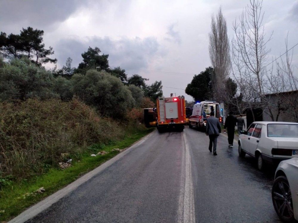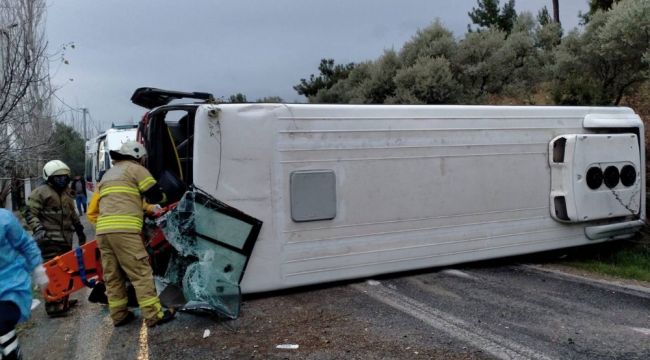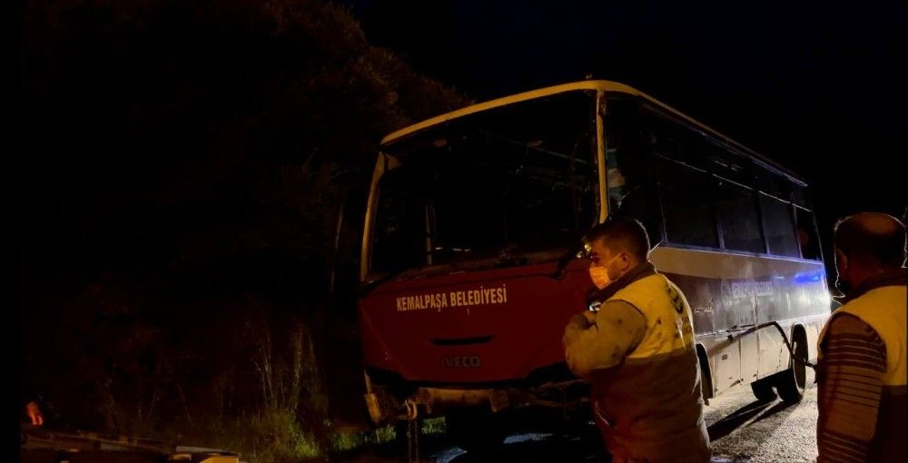 İzmir'in Kemalpaşa ilçesinde belediye işçilerini taşıyan personel servisi kaza yaptı. Devrilen midibüste bulunan sürücü dahil 4 belediye personeli yaralandı.