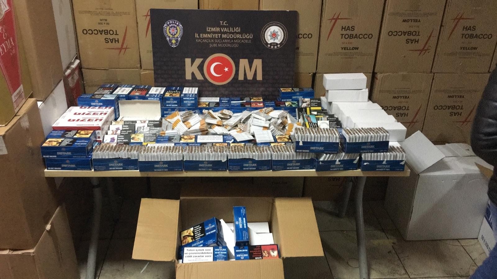 Konak ilçesinde gerçekleştirilen operasyonda, bir işyerinde aramalar yapıldı. Aramalar sonucu; 22 bin bandrolsüz ve gümrük kaçağı makaron, 4 bin 300 adet sarma sigara, 16 paket fotokopi bandrollü nargile melası ele geçirildi.