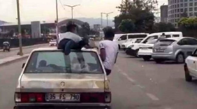 Bir süre otomobil üzerinde ve camından sarkarak yolculuk yapan 2 kişi, otomobilin trafik ışıklarında durması üzerine, camdan otomobilin içerisine girdiği görüldü. Olayı gören ve şaşkınlığını gizleyemeyen bir vatandaş ise saniye saniye bu tehlikeli yolculuğu görüntüledi.Polis ekipleri, hem kendi hayatlarını hem de trafiğe tehlikeye atan şüphelilerin kimliklerini belirlemek için çalışmalarını sürüdürüyor.