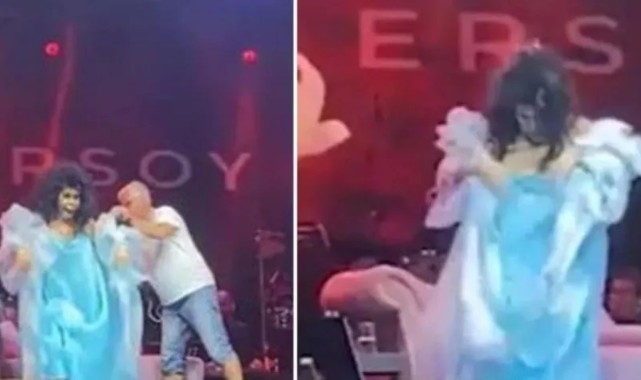 İzmir'de sahneye çıkan ünlü sanatçı Bülent Ersoy, sahnede göğüslerinin açılması nedeniyle zor anlar yaşadı. Ersoy'un imdadına korumaları yetişti.