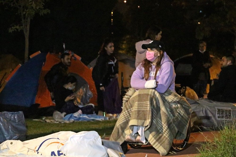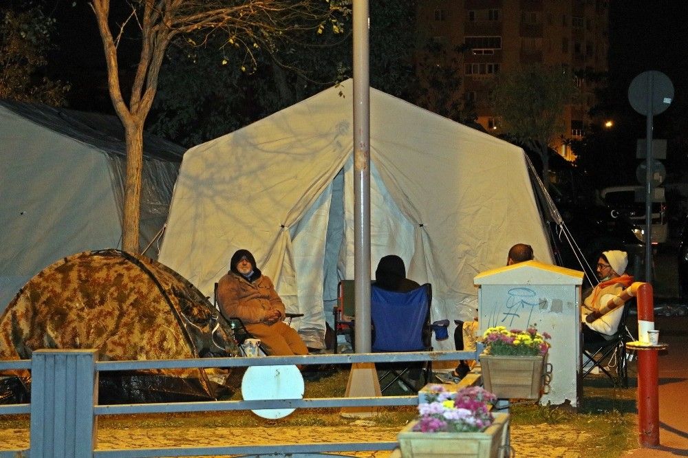 Geceyi çadırlarda geçiren vatandaşlar, halen depremin şokunda. Deprem anında yatak odasında olduğunu anlatan Ezgi Urgan, yaşadığı korku dolu anları şu sözlerle anlattı: "Tam durdu diyoruz, tekrar başlıyor. 30 saniye sallandık. Bize daha uzun bir süre geldi. Durduğundan emin olduktan sonra aşağıya indik. Herkes aşağıda korku halindeydi. Daha önce bu kadar şiddetli bir deprem yaşamadık.