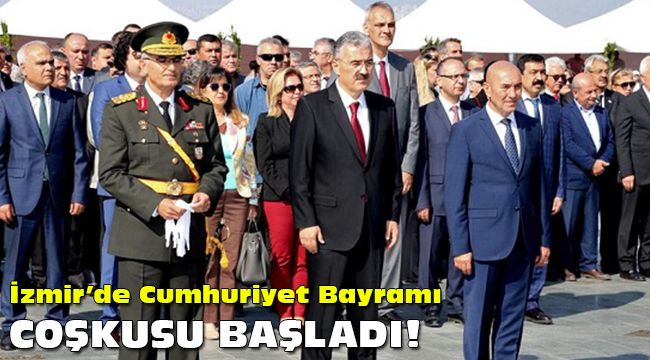 Alsancak cumhuriyet Meydanı’ndaki törende İzmir Valiliği çelenginin ardından Ege Ordusu ve Garnizon Komutanı Korgeneral Ali Sivri, İzmir Büyükşehir Belediye Başkanı Tunç Soyer de çelenklerini bıraktı. Saygı duruşu, İstiklal Marşı'nın okunması ve şanlı bayrağın göndere çekilmesiyle ilk resmi tören sona erdi. Vali Ayyıldız, yarın (salı) makamında tebrikleri kabul edecek, ardından Cumhuriyet Meydanı'nda kutlama ve geçit törenine katılacak.