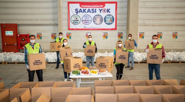 İzmir Büyükşehir Belediyesi kuru gıda kolileri ve kavurmaya ek olarak içinde elma, portakal, limon, soğan ve patates bulunan direnç paketlerinin dağıtımına da başladı. İlk etapta beş bin paket desteklenen ailelere ulaştırılacak. Sebze meyve halinden birinci elden alınan ürünler, üzerinde “İzmir halkının hediyesidir” yazan kolilerle dağıtılacak.