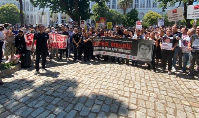 Kardiyoloji Uzmanı Dr. Ekrem Karakaya'nın görevi başında öldürülmesinin ardından bugün İzmir'de yapılan eylemlerde sağlık çalışanları İzmir Tabip Odası'nın çağrısıyla eylem yaptı.