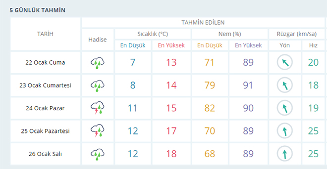 İZMİR İÇİN 5 GÜNLÜK HAVA TAHMİN RAPORU