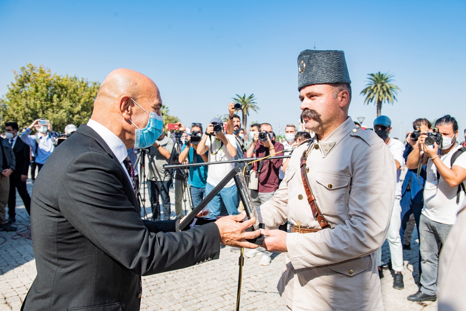 9 Eylül törenleri kapsamında Konak Meydanı'nda düzenlenen bayrak törenine Vali Yavuz Selim Köşger, Ege Ordusu ve Garnizon Komutanı Orgeneral Ali Sivri, Büyükşehir Belediye Başkanı tunç soyer ve eşi Neptün Soyer ile İzmir Büyükşehir Belediyesi Genel Sekreteri Buğra Gökçe, CHP İzmir Milletvekili Tacettin Bayır, Mahir Polat, Murat Bakan, Özcan Purçu, Bedri Sertel de katıldı. Burada süvari birlikleri tarafından İzmir'in kurtuluş günü canlandırıldı. Yüzbaşı Şerafettin’i temsil eden bir asker tarafından bayrağımız İstiklal Marşı eşliğinde göndere çekilirken meydanda duygu dolu anlar yaşandı.