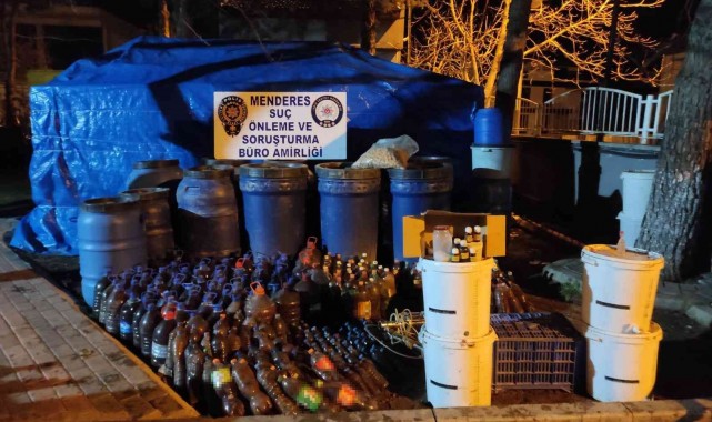Menderes İlçe Emniyet Müdürlüğü Suç Önleme ve Soruşturma Büro Amirliği ekipleri, ilçede C.B. adlı bir kişinin evinde sahte içki ürettiği bilgisi üzerine harekeye geçti. Ekiplerin önceden belirlenen adrese düzenlediği operasyonda, C.B. kıskıvrak yakalanarak gözaltına alındı. Evde yapılan aramada ise 2 bin 250 litre sahte şarap ele geçirildi.