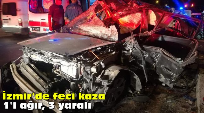 İzmir'in Çiğli ilçesinde, henüz belirlenemeyen sebepten dolayı sürücüsünün direksiyon hakimiyetini kaybettiği otomobil üst geçit ayağına çarptı. Kazada 1'i ağır,3 kişi yaralandı.