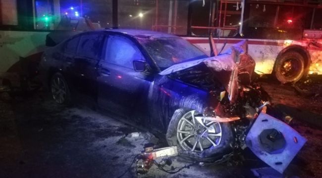İzmir'in Balçova ilçesinde aşırı süratli bir araç sürücüsünün direksiyon hakimiyetini kaybetmesi sonucu çarptığı aydınlatma direğini de metrelerce sürükledikten sonra kavşağı aşıp belediye otobüsüne çarparak durabildi. kaza da büyük hasar gören ve alev alan araçtaki sürücü ile yanında bulunan kişi yaralandı.