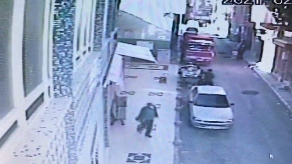 İzmir'de, saatteki hızını artıran fırtına nedeniyle bir caminin minaresinden beton parçası koparak zemine düştü. Parçanın yere düşmesiyle yaşanan panik anları ise güvenlik kameralarına yansıdı.
