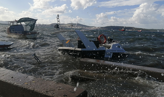 İzmir’de etkili olan fırtına sebebiyle Aliağa ilçesinde balıkçı tekneleri battı. Şiddetli lodos nedeniyle sahilİzmir’de etkili olan fırtına sebebiyle Aliağa ilçesinde balıkçı tekneleri battı. Şiddetli lodos nedeniyle sahil bandında 4 tekne zarar görürken 3 tekne alabora oldu. bandında 4 tekne zarar görürken 3 tekne alabora oldu.