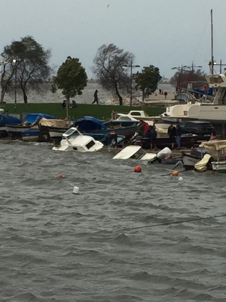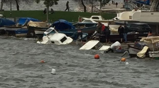 İzmir'de fırtınada çok sayıda tekne batarken, ağaçlar devrildi, bazı binaların çatıları da uçtu.