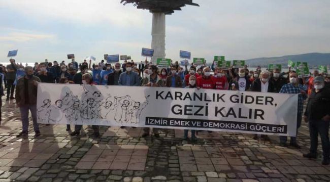 Gezi Direnişi’nin 7’nci yıl dönümünde, İzmir Emek ve Demokrasi Güçleri tarafından Gündoğdu Medyanı’nda bir buluşma gerçekleştirildi.Buluşma, yaşanan Covid-19 salgını sebebiyle sosyal mesafe kurallarına uygun bir şekilde organize edildi.KESK İzmir Dönem Sözcüsü ve Eğitim Sen İzmir 2 No’lu Şube Başkanı Veysel Beyazadam tarafından okunan basın açıklamasında, Gezi Direnişi’nin aradan geçen 7 yıla rağmen hafızalardaki tazeliğini koruduğu vurgulandı. Buluşmaya CHP İzmir Milletvekili Sevda Erdan Kılıç, CHP İzmir İl Başkanı Deniz Yücel, CHP Konak İlçe Başkanı Çağrı Gruşçu, demokratik kitle örgütleri ve siyasi parti temsilcileri katıldı.Veysel Beyazadam, okuduğu basın açıklamasında şunları kaydetti:TALEPLER GEÇERLİLİĞİNİ KORUYOR“Gezi Direnişi’ni yaşanıp biten bir olay olmaktan çıkarıp, bugüne ve geleceğe etki eden canlı bir süreç haline getiren temel neden, Türkiye’de yaşayan ve iktidarın baskıcı, otoriter uygulamalarından rahatsız olan her kesimin, alanlara çıkarak tepkisini göstermiş olmasıdır. Türkiye’de yıllardır kamu emekçilerinin, işçilerin, Kürtlerin, Alevilerin, kadınların, gençlerin, toplumun tüm ezilen ve dışlanan kesimlerin taleplerinin görmezden gelinmesine karşı savunulan talepler, günümüzde de geçerliliğini korumaktadır.”‘FLOYD VE ALİ İSMAİL’ MESAJICovid-19 salgının devam ettiği bu süreçte AKP’nin baskıcı politikalarını ve uygulamalarını sürdürdüğü ifade eden Beyazadam, “Salgına ve diğer sorunlara dönük toplumsal sorumluluğu gereği siyasi iktidarın uygulamalarını eleştiren, öneriler getiren meslek birlikleri ve barolar salgın döneminde siyasi iktidarın hedefi haline gelmiştir. George Floyd’un boynuna çöken diz dünyanın her yerinde emekçilerin, yoksulların, dışlanmışların, egemene muhalefet edenlerin boynundadır. Ali İsmail’i öldüren el ile boynumuza çöken diz aynı vücuda aittir. Sermayenin ve egemenin vücududur o. Derisinin rengi, konuştuğu dil, etnik kökeni farklı olanı, kendisi gibi düşünmeyeni, yaşamayanı, inanmayanı yok ederek varlığını sürdürmeye çalışan bu yaklaşıma karşı ısrarla ve inatla eşitlik ve özgürlük mücadelemizi sürdürdük, sürdüreceğiz” ifadelerini kullandı.‘GEZİ, KORKU DUVARINI YIKMIŞTIR’Gezi Direnişi’nin AKP iktidarının demokratik tepkiler karşısında sürdürdüğü ayrımcı ve saldırgan tutumuna karşı güçlü bir yanıt olduğunu söyleyen Beyazadam, “Gezi Direnişi, 1980 sonrasında örülen ve AKP iktidarı döneminde dikenli tellerle çevrilen o büyük korku duvarını yıkmış, yürünmesi gereken yolu göstermiştir. Son dönemde tekçi söylemle birlikte artan baskı, yasak ve sindirme politikalarına karşı örgütlü ve kitlesel mücadeleden başka çıkar yol görünmemektedir. Gezi; emekle, bilimle kurulacak yeni bir toplum, yeni bir ülke için hayallerimizden, umutlarımızdan vazgeçmemenin adıdır. Umuttur, dirençtir, yaşama sıkı sıkıya sarılmaktır, paylaşmaktır, birlikte yaşamaktır, saygıdır, bir arada farklı olabilmektir, birlikte öğrenmektir, geleceğimize sahip çıkmaktır, özgür ve eşit bir dünya düşünün peşinde koşmaktır, özgürce dans etmektir” dedi.