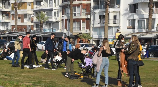 İzmir’de hafta başında etkili olan sağanağın ardından güneş açtı, hava sıcaklığı yükseldi. Pek çok İzmirli güneşi görünce Alsancak Kordon sahiline koştu. Genç, yaşlı birçok kişi, çimler ile sahil kenarında oturarak, vakit geçirdi. Kordon’da oluşan yoğunluk nedeniyle, sosyal mesafe ile maske kuralı unutuldu. Gruplar halinde çimlerde oturanlar gitar çaldı, şarkı söyledi. Kimise de bisiklete binerken oltayla balık tutanların yoğunluğu dikkat çekti. Sahilde yaşanan kalabalık koronavirüs salgını öncesi günleri aratmadığı gözlendi.