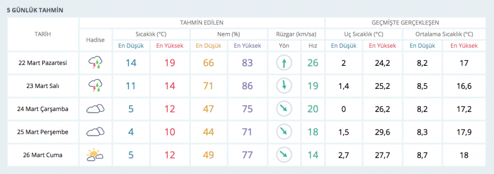 İZMİR'İN 5 GÜNLÜK HAVA RAPORU