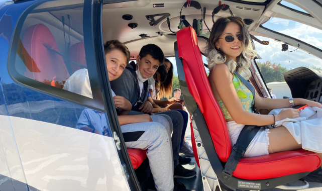 İzmir Valiliği ve İzmir Büyükşehir Belediyesi işbirliği ile İzmir’in 99’uncu kurtuluş yıldönümü etkinlikleri kapsamında dün düzenlenen hava gösterisi İzmir Airshow etkinliği nefes keserken gökyüzünde de ayrı bir heyecan yaşandı. İzmir Büyükşehir Belediyesi Kültür ve Sanat Dairesi Başkanlığı desteğiyle Sosyal Projeler Dairesi Başkanlığı'na bağlı Genç İzmir Örnekköy ve Tarihi Havagazı Fabrikası Gençlik Yerleşkesi üyesi 15 - 20 yaş arası başarılı öğrenciler ile şehit çocukları, İzmir havacılık Kulübü'nün Buca Kaynaklar'daki pistinden ve Selçuk Efes Havaalanı'ndan İzmir Havacılık Kulübü Derneği üyesi pilotlar eşliğinde helikopterle gökyüzüne havalandı. Gençlere hava aracı pilotu İzmir Milletvekili Murat Bakan da eşlik etti.