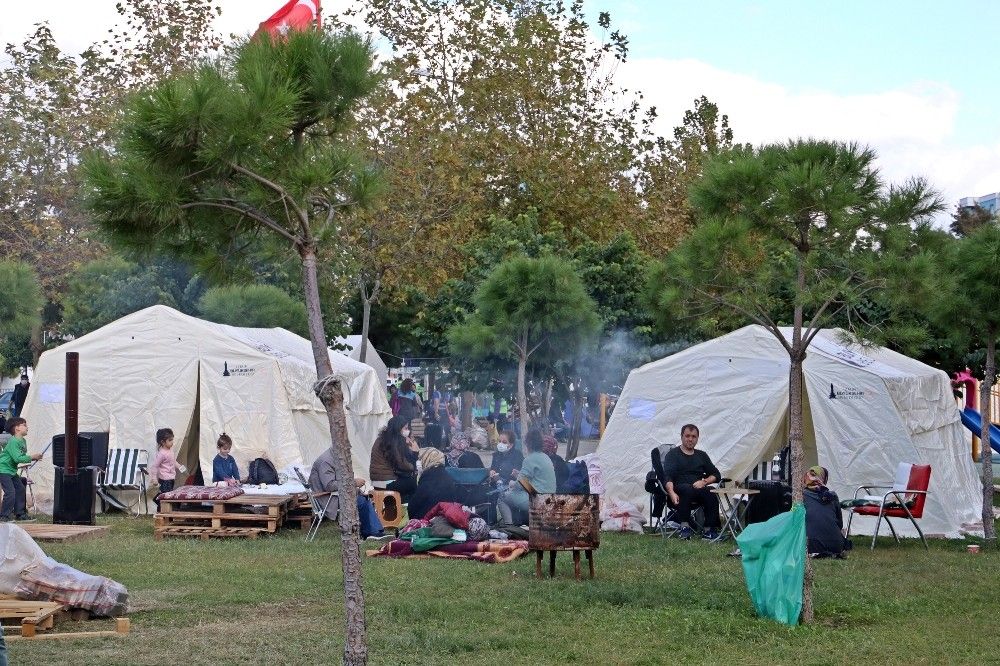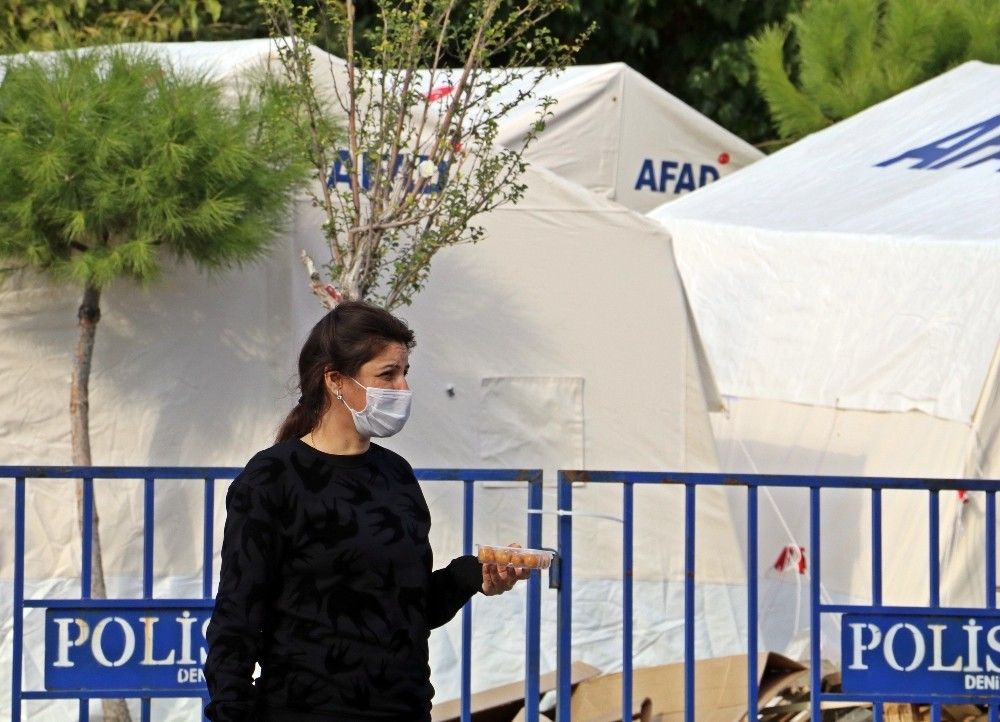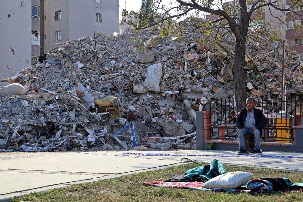 Evleri yıkılan, ya da ağır hasar oluşan vatandaşlar ise yakın bölgelere kurulan çadır kentlerde yaşamlarını sürdürüyor. Depremzedeler, enkazları kaldırma ve hasarlı binaların yıkılışlarını hüzünlü bir şekilde izliyor. Depreme mutfakta yakalanan vatandaşlardan Nurhayat Aynas, kayınvalidesinin de içerde olduğunu ve sarsıntıyla yere düştüğünü söyledi. Büyük korku yaşadıklarını anlatan Aynas, hasar gördüğü için yıkımı devam eden evlerinin yıkımını izlediklerini belirterek, "Her şeyimiz içeride. Kimliğime kadar alamadım. İçeride çocuklarımızın hatıra fotoğrafları ve albümleri var. Kayınpederimin değerleri eşyaları var. Bütün eşyalarımız içeride kaldı. Hiçbir şey alamadan anca kendimizi can havliyle dışarı attık. Ziynet eşyalarımız bulunursa bize geri verileneceği söylendi. Bulunamazsa da yapacak bir şey yok" dedi.
