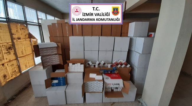 İzmir'in Bornova ve Çiğli ilçelerinde jandarma ekipleri tarafından iki ayrı depoya düzenlenen operasyonda çok sayıda kaçak sigara ve makaron ele geçirilirken, operasyonlarda 2 kişi gözaltına alındı.
