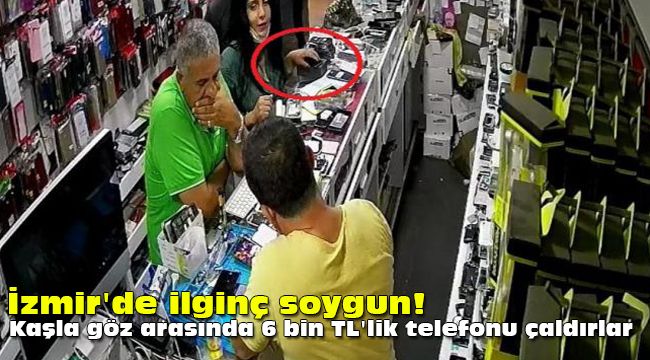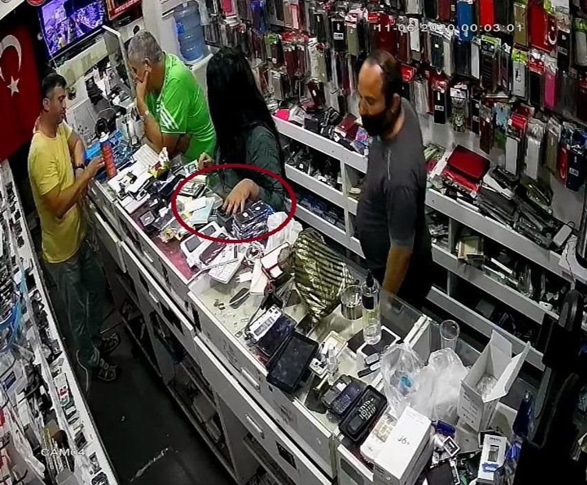 Edinilen bilgiye göre olay, Urla ilçesinde meydana geldi. 2 erkek 1'i kadın toplamda 3 kişi, müşteri kılığında telefon mağazasına geldi. 3 kişi, mağaza sahibine telefon fiyatlarıyla ilgili çeşitli sorular sordu. Bu sırada iş yeri sahibi başka bir müşteriyle ilgileniyordu. Mağaza sahibine oyalayan kadın, kaşla göz arasında sol eliyle biranda telefonu alarak cebine attı. Rahat tavırlarıyla dikkat çeken hırsızlar, daha sonra hiç bir şey olmamış gibi mağazadan ayrıldı. İş yeri sahibi ise daha sonra güvenlik kameralarını inceleyince olayı fark etti. Görüntülerde mağazaya giren hırsızlardan kadının sol eliyle telefonu hızlı bir şekilde çalması kameralara yansıyor.