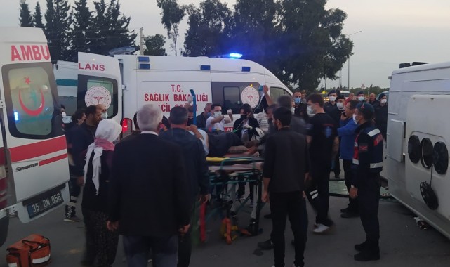 İzmir'de mandalina işçilerini taşıyan iki midibüsün karıştığı kazada 5'i ağır 45 kişi yaralandı.