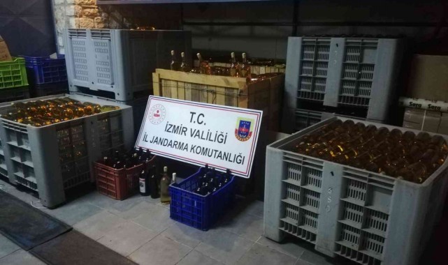 İzmir'de jandarma ekiplerinin bir işletmeye yaptığı operasyonda piyasa değeri yaklaşık 180 bin lira olan bandrolsüz içki ele geçirildi.