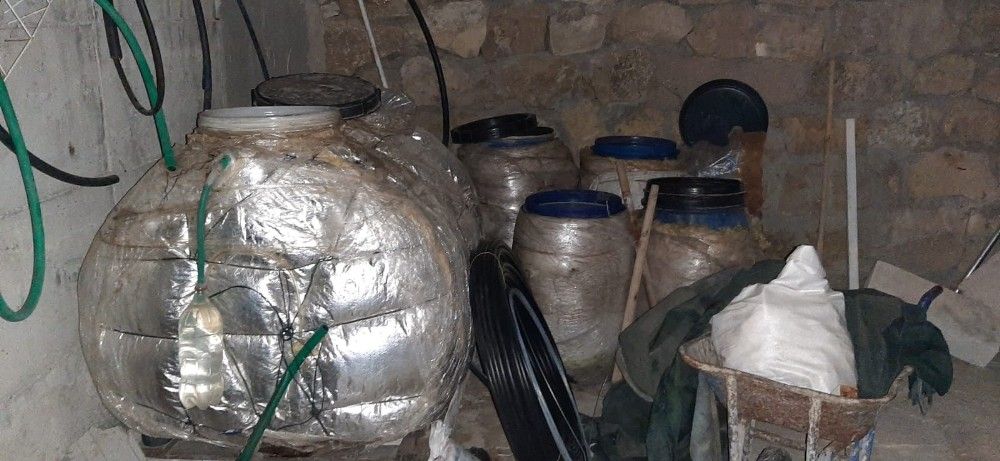 Ekipler, bahse konu işyerinde yaptığı aramalarda ilk olarak 0,5 litrelik pet şişelere doldurulmuş vaziyette toplam 4,5 litre sahte kaçak alkollü içecek, şeffaf poşet içinde ve satışa hazır vaziyette 30 gram esrar olduğu değerlendirilen uyuşturucu madde ve bir adet hassas terazi ele geçirdi. İş yeri sahibinin ikamet adresinde ise tankların içerisinde ve bidonlarda toplam 2.300 litre fermente alkol, pompalı damacana ve plastik petler içerisinde toplam 387 litre hazır rakı, 3 adet damacana ve 14 adet pet şişe içerisinde toplam 57 litre hazır viski, 15 adet 30 mililitrelik rakı kiti, 10 adet ise 10 ve 20 mililitrelik viski kiti ele geçirildi.