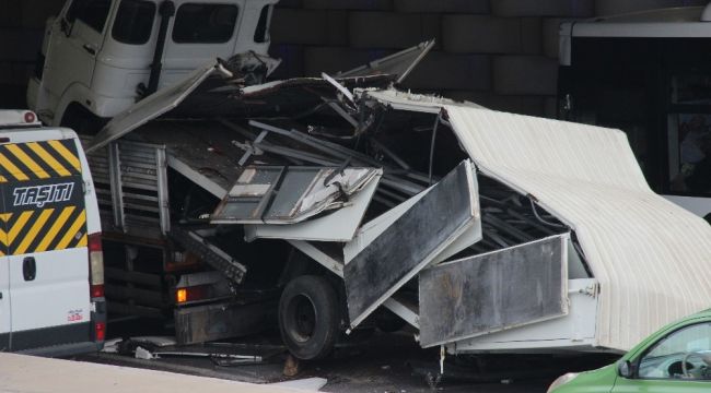 İzmir'in konak ilçesinde bir kamyon alt geçide sıkıştı. Meydana gelen kazadan dolayı trafik bir süre aksarken, alt geçit tavanına sıkışan kamyon kullanılamaz hale geldi.