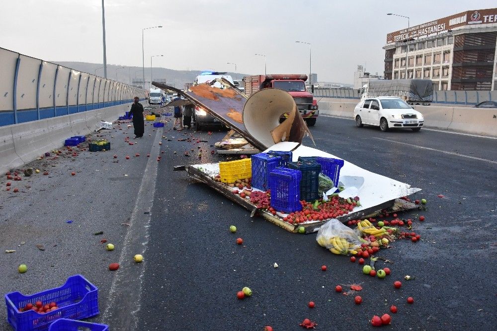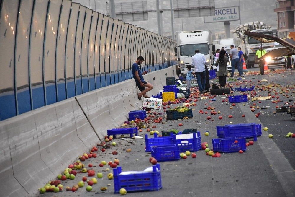 Sebze ve meyveler otoyola saçıldı