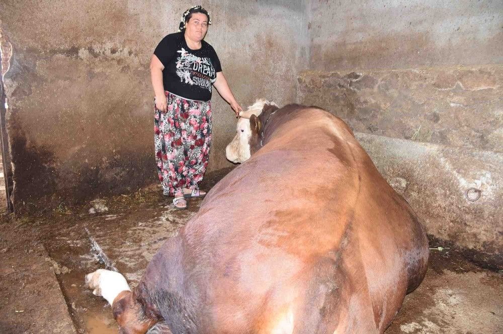 Menemen ilçesi Süleymanlı Mahallesi'nde hayvancılık yapan Ayşe Zeybek, 3 aylıkken satın aldığı buzağıyı evlatlarından ayırmadan sütle besleyip büyüttü. Sahibinin boyunu geçen ve 2,5 yaşına gelen boğa, kapılardan geçemeyecek duruma geldi. Yaklaşık 1 ay önce komşuların yardımıyla zorlanarak tartılan boğa bin 400 kilo geldi. Ayşe Zeybek, bayrama kadar bin 500 kiloya ulaşacağı tahmin edilen boğayı üzülerek satışa çıkarttı. Boğanın satışa çıkacağını duyanlar ise hatıra fotoğrafı çektirmek için Ayşe Zeybek'in kapısını çalıyor.