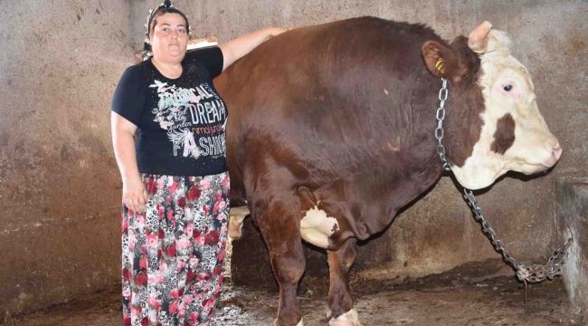 İzmir'in Menemen ilçesinde yaşayan Ayşe Zeybek, evladı gibi baktığı bin 400 kilogram gelen boğayı kapılardan geçemeyecek kadar kilo almaya başlayınca Kurban Bayramı öncesi satışa çıkardı. Boğanın satışa çıkacağını duyanlar ise fotoğraf çektirmek için Zeybek'in kapısını çalıyor.