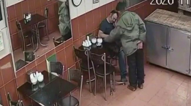 İş yerinin güvenlik kamerasına yansıyan görüntülerde, üzerinde mont olan, ayakkabısız bir kişinin sessizce içeri girip, iş yeri sahibinin önünde bir süre durduğu, pastane sahibinin uyuduğundan emin olduktan sonra masa üzerindeki cep telefonunu alarak uzaklaştığı görüldü. Hırsızın rahat tavırları ise görüntüyü izleyenlerin dikkatini çekti.