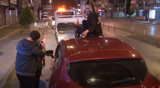 İzmir'de sokağa çıkma kısıtlamasının başladığı saatlerde alkollü araç süren B.K. ve yanındaki arkadaşı, polis ekiplerine zor dakikalar yaşattı. Ceza yemelerine ve araçlarının çekilecek olmasına tepki gösteren iki kadın, aracın tavanına çıkarak burada alkol almaya devam etti. B.K. ve arkadaşı, ortak bir arkadaşlarının olay yerine gelip onları ikna etmesi sonrası aracın tavanından inerek polis ekiplerince karakola götürüldü.