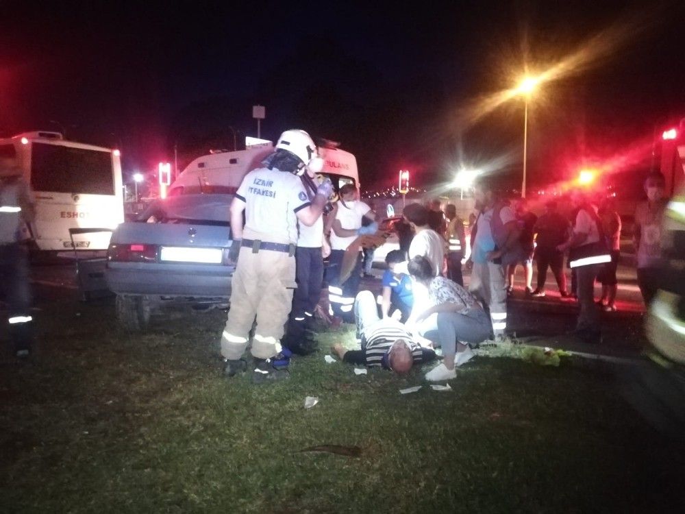 İzmir'in Balçova ilçesinde, otomobil ile belediye otobüsünün karıştığı trafik kazasında 1'i hamile, 2'si çocuk olmak üzere toplamda 6 kişi yaralandı.