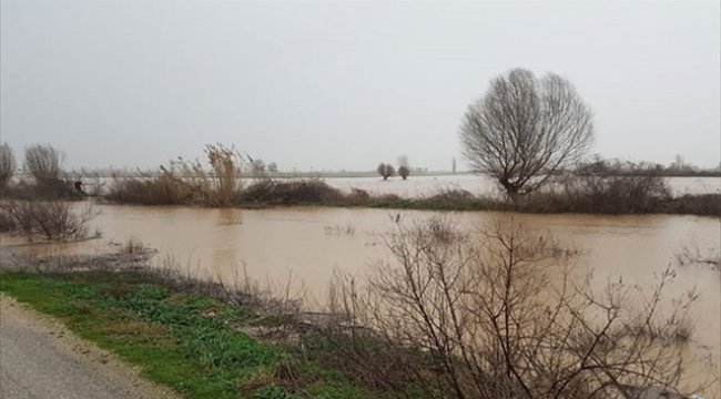 İzmir'de birkaç gündür aralıksız süren yağışlar nedeniyle Küçük Menderes Nehri taştı, tarım arazileri su altında kaldı.