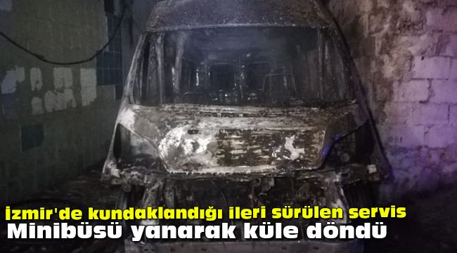 İzmir'in Konak ilçesinde, molotof kokteyli atılarak kundaklandığı ileri sürülen servis minibüsü yanarak küle döndü.