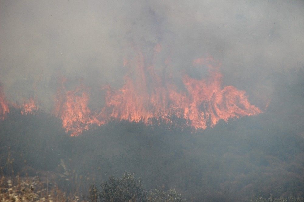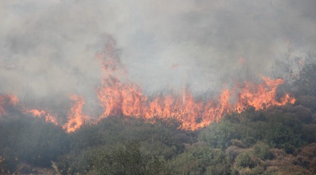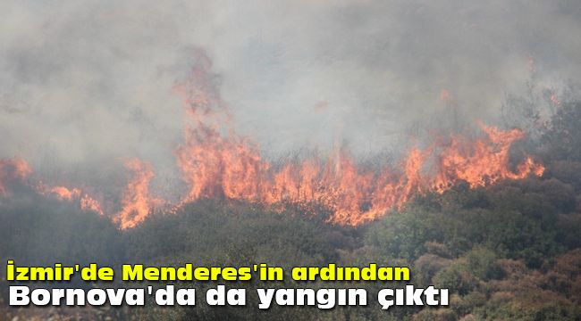 İzmir'in Menderes ilçesinde çıkan orman yangınının ardından Bornova'da da makilik alanda yangın çıktı. Ekiplerin yangınlara müdahaleleri sürüyor.