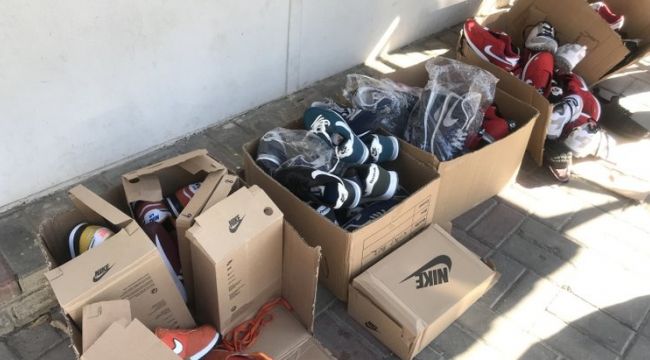 İzmir'in Konak ilçesinde, 2 farklı yerde bulunan 44 kutu kullanılmamış ayakkabı polise teslim edildi.