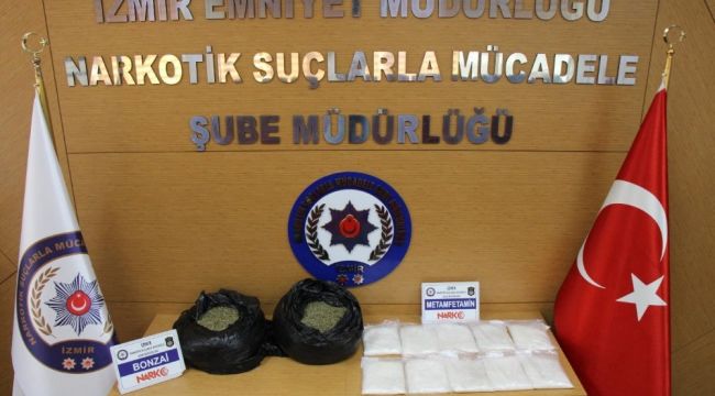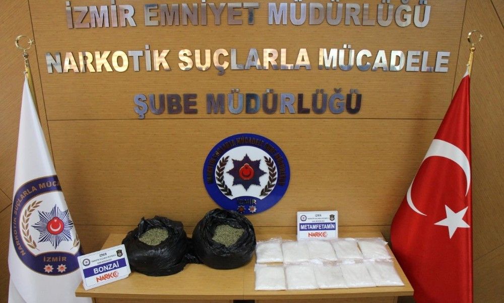 İzmir İl Emniyet Müdürlüğü narkotik Suçlarla mücadele Şube Müdürlüğü ekipleri, uyuşturucu madde imal veya ticareti yapan şahıslara yönelik dün ve bugün iki ayrı operasyon gerçekleştirdi. Ekipler, İzmir'e uyuşturucu getireceği tespit edilen bir araca yönelik yaptığı operasyonda 4 kilo 930 gram metamfetamin maddesi ele geçirdi. Ekipler ayrıca, İzmir'e yolcu otobüsü ile uyuşturucu madde getireceği tespit edilen şahıslara yönelik, İzmir Otogarı'nda operasyon gerçekleştirdi. Yapılan aramada 10 kilo 750 gram bonzai maddesi ele geçirdi.