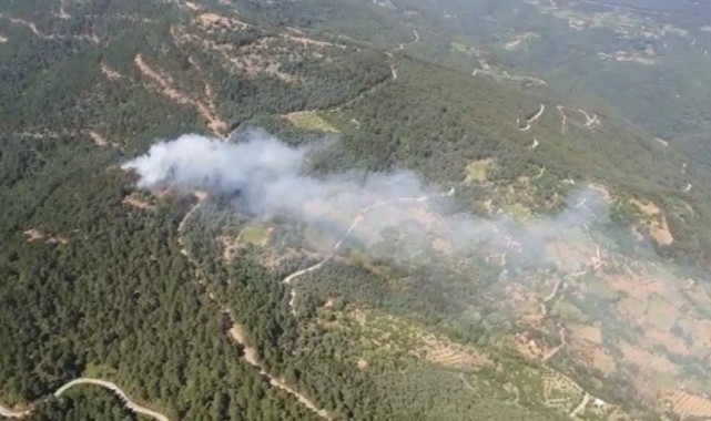 İzmir'in Bayındır ilçesinde ormanlık alanda çıkan yangına havadan ve karadan müdahale başladı.
