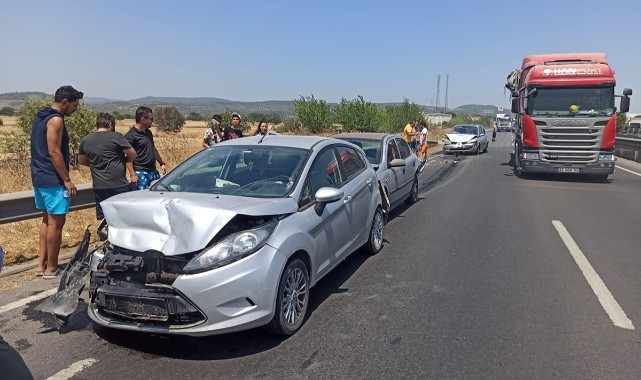 İzmir'in Aliağa ilçesinde, orta refüjde çıkan yangın sürücülere zor anlar yaşatırken, duman nedeniyle görüş mesafesi düşünce 4 araç birbirine girdi.
