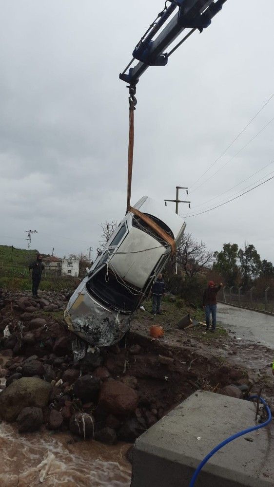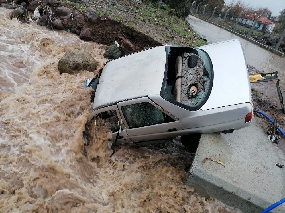 İzmir'de sabah saatlerinde başlayan yağmur, öğle saatlerinde şiddetini artırdı. Şiddetli yağış nedeniyle pek çok ilçede yollar göle döndü. Ana caddelerde su birikintileri oluşurken, Aliağa ve Ödemiş'te de su taşkınları yaşandı. Ödemiş'te pek çok evi su basarken, sel suları Aliağa'da ise yürekleri ağıza getirdi. Aliağa ilçesi Yukarı Şehit Kemal Mahallesi'nde park halinde olan bir araç sel sularına kapıldı. Sele teslim olan araç sürüklenerek su kanalına düştü. Araçta kimsenin bulunmaması olası bir can kaybını önledi. Su kanalındaki araç vinç yardımıyla bulunduğu yerden çıkarılırken aracın kullanılmaz hale geldiği görüldü.
