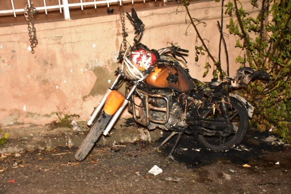 Olay yerine gelen polis ekipleri yanan motosikletin olduğu bölgeyi emniyet şeridi ile kapattı. Motosikletin yandığı bölgeyi ve yakınlarını inceleyen ekipler, olayın kim ya da kimler tarafından gerçekleştiğini tespit etmek için çalışma başlattı.
