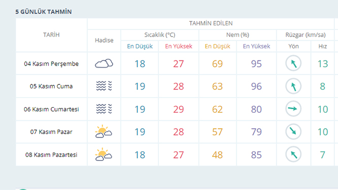 Meteorolojiden alınan bilgilere göre ülkeyi pastırma sıcakları saracak.İzmir'de de tüm yurtta olduğu gibi en yüksek sıcaklıklar mevsim normallerinin üzerine çıkacak, kent yazdan kalma bir haftasonu geçirecek. Kentte nem oranının zaman zaman yüzde 50'lilerin altına düşeceği 5 günlük periyotta termometreler 29 dereceye kadar çıkacak.