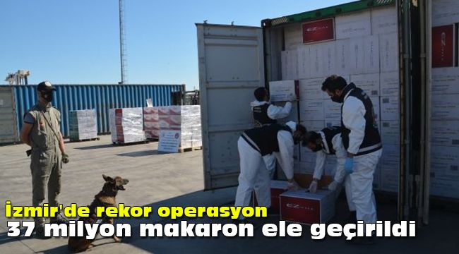 İzmir Aliağa Limanı'nda gerçekleştirilen operasyonda, 4 konteyner içerisinde 37 milyon 190 bin adet makaron (filtreli sigara kağıdı) ele geçirilerek, bugüne kadar tek seferde gerçekleştirilen en yüksek makaron yakalamasına imza atıldı.
