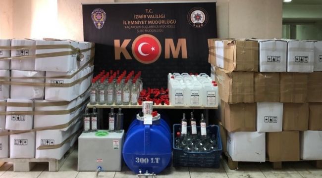 İzmir İl Emniyet Müdürlüğü Kaçakçılık Suçlarıyla Mücadele Şube Müdürlüğü ekipleri, Işıkkent Mahallesi'ndeki sanayi sitesinde bulunan bir depoda sahte etil alkol üretildiği bilgisi üzerine harekete geçti. Depoya operasyon gerçekleştiren ekipler, piyasaya sürülmeye hazır halde bin 8 litre sahte etil alkolün yanı sıra 5 litrelik bidonlarda 640 litre sahte etil alkol, tank içerisinde 150 litre sahte etil alkol, 810 adet boş şişe, 350 adet plastik bilyeli kapak, 200 adet metal bilyeli kapak, 380 adet taklit etiket ve çeşmeli tanka el koydu.