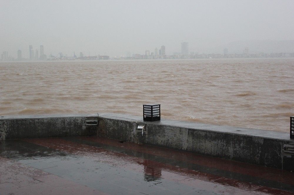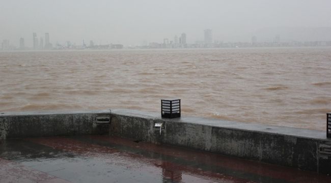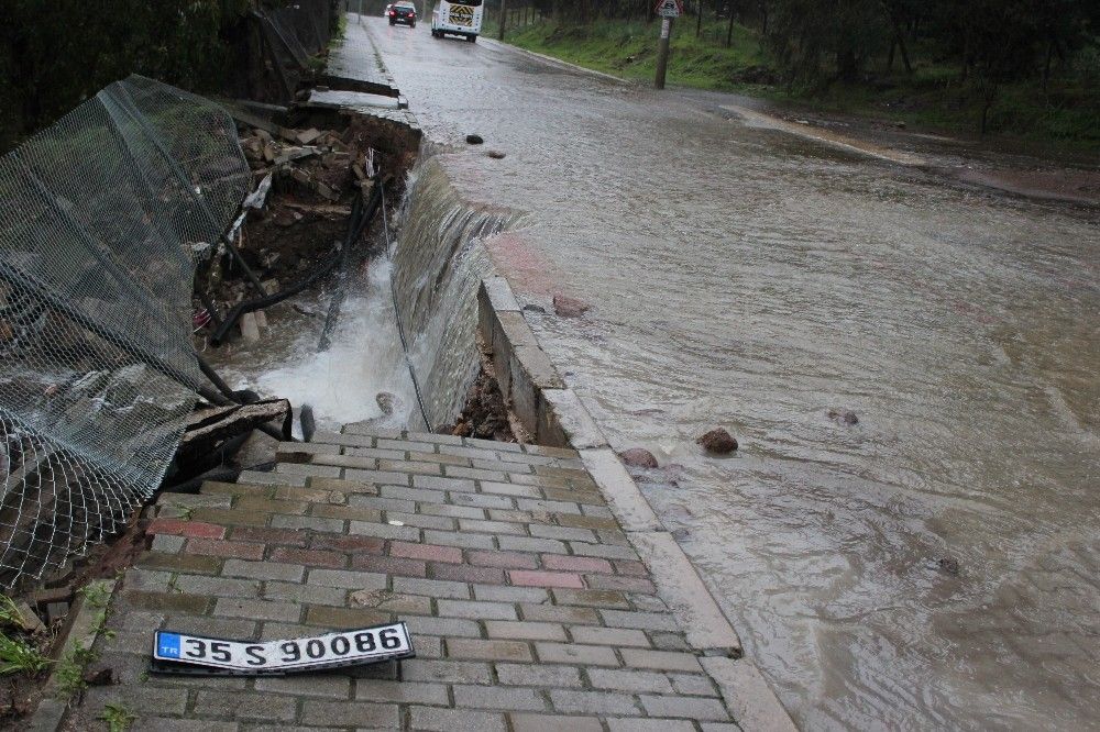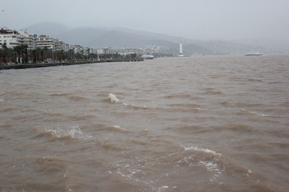 İzmir'de sağanak yağışın ardından taşan derelerden denize akan sel suları nedeniyle İzmir Körfezi'nin rengi değişti. Derelerin taştığı bazı yerlerde de yollarda göçük meydana geldi.