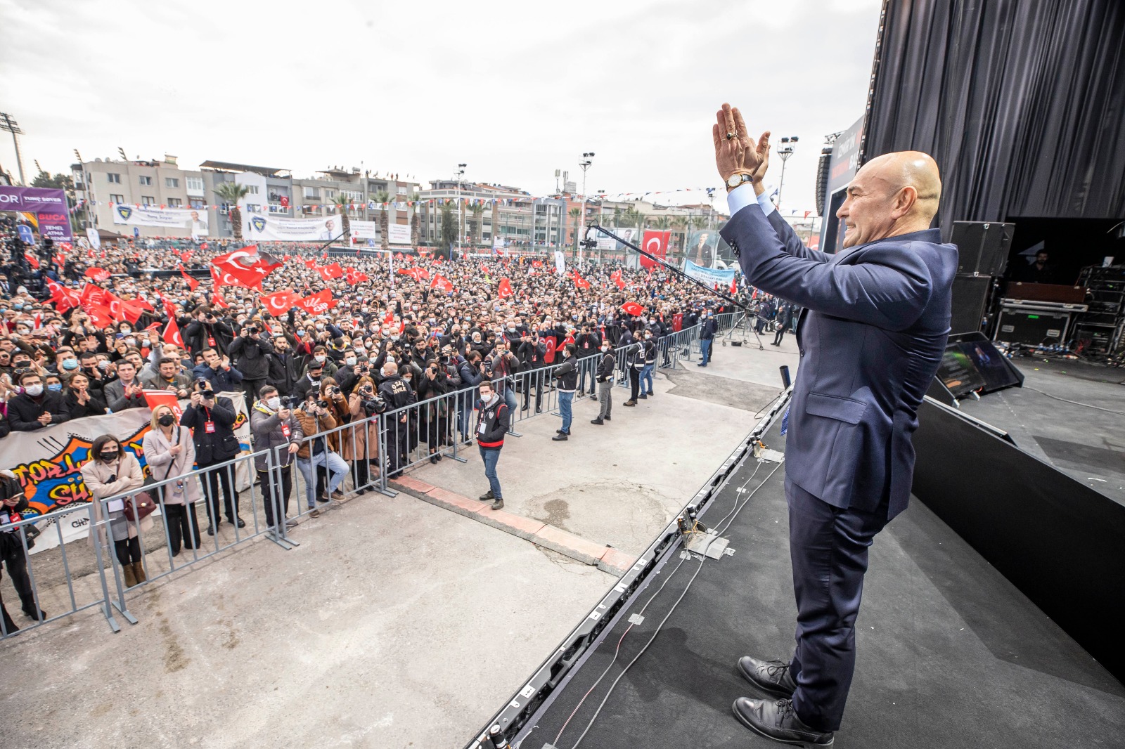 AKP iktidarına seslenen Başkan Soyer, “Ankara! Buradan Ankara’ya seslenmek istiyorum. İzmir bu ülkede değil mi? İzmirliler Türkiye Cumhuriyeti vatandaşı değil mi? Biz İzmir’i demir ağlarla örüyoruz. Narlıdere Metrosu’nu ve Çiğli Tramvayı’nı bitirmek üzereyiz. Buca Metrosu’nun temelini atıyoruz. Eş zamanlı yürüttüğümüz altı raylı sistem projesi toplam 93 kilometre uzunluğunda.